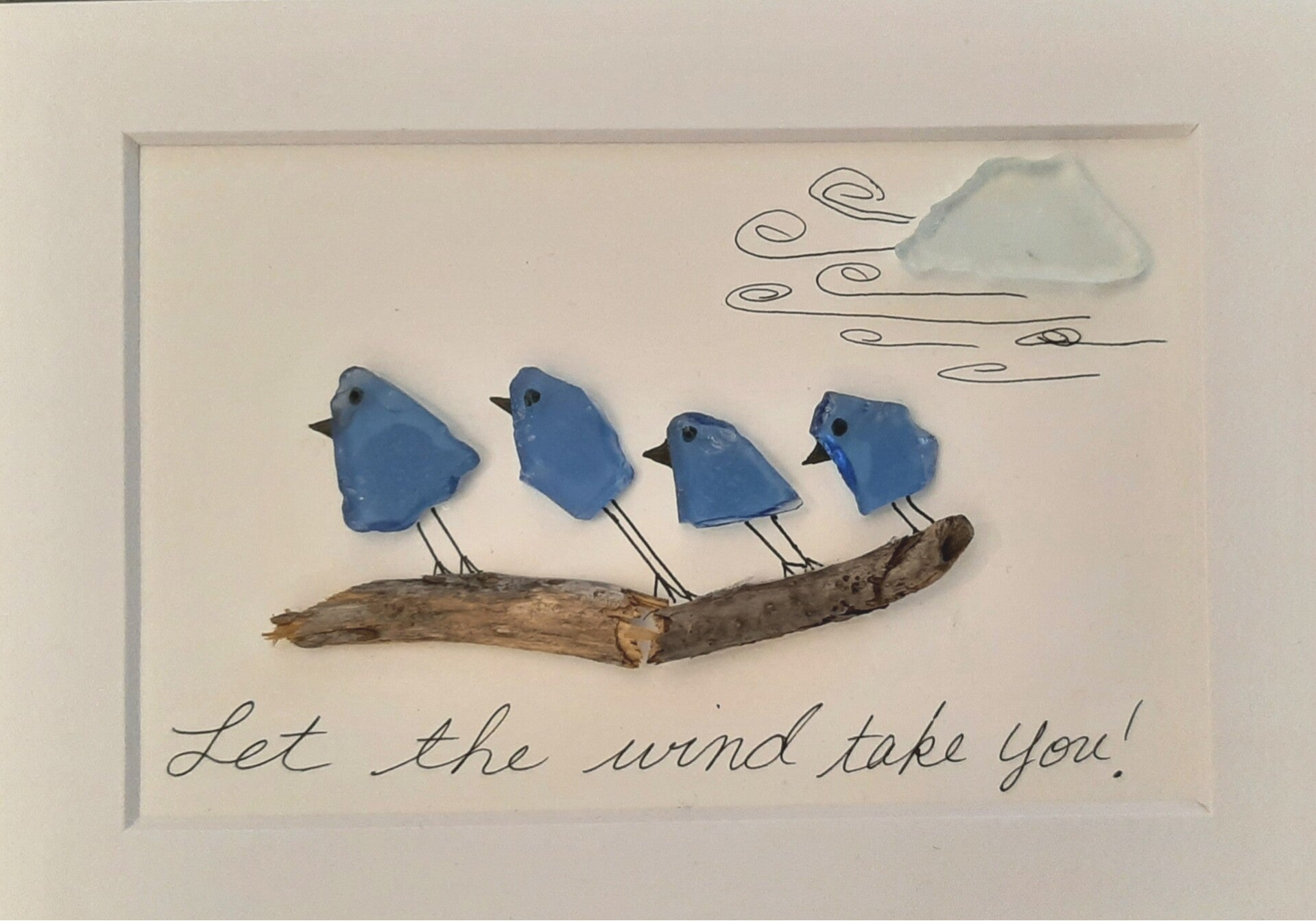 5x7 Sea Glass birds on driftwood