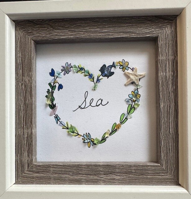 4x4 framed Seaglass Herat with illustrated flowers